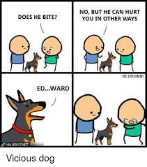 On May 18th 2015 Cyanide and Happiness released a comic in which a person asks a dog owner Does your dog bite to which he responds Dont worry his bark is worse than his bite After biting the man the dog then destroys the. Exploitable year 2015 origin cyanide and happiness tags webcomic comic exploitable cyanide and happiness dog about. Does He Bite.
